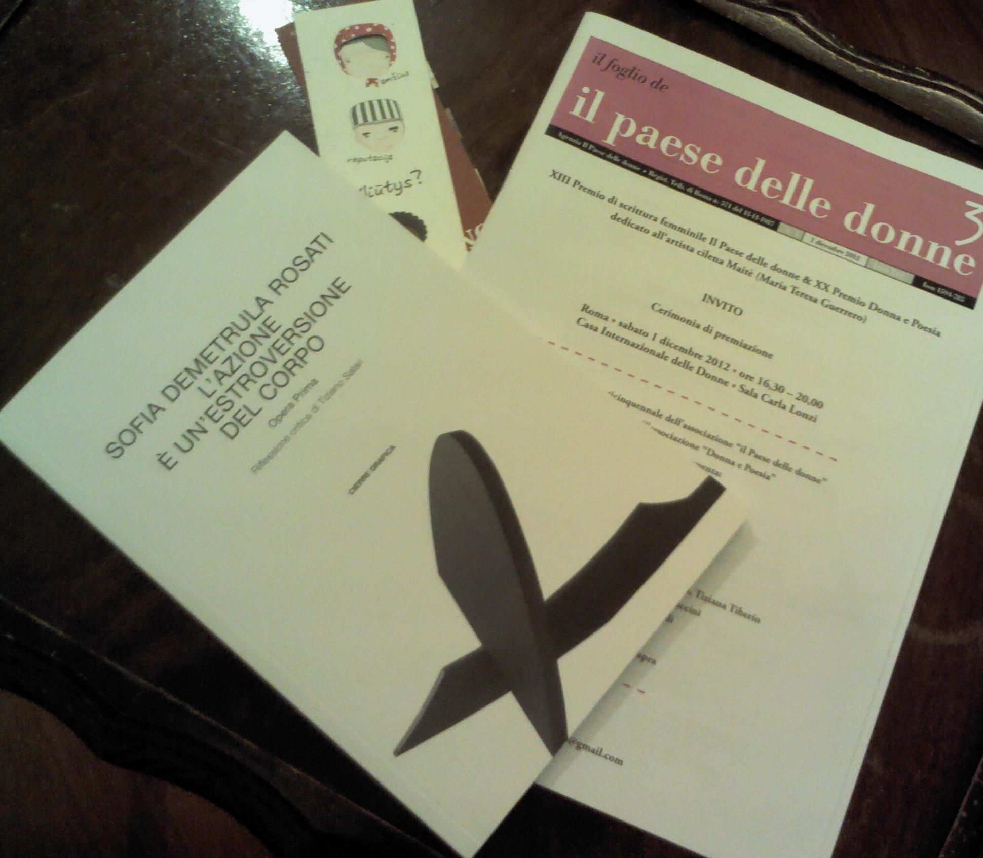 Il paese delle donne – XX PREMIO DONNA E POESIA – Dedicato all’artista cilena Maitè (Maria Teresa Guerriero) ha assegnato il 1° premio – ex equo (sezione opera edita) al volume di Sofia Demetrula Rosati, l’azione è un’estroversione del corpo, Cierre Grafica, Verona, 2011.